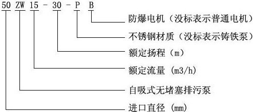 【ZW型無堵塞自吸排污泵】型號(hào)意義: