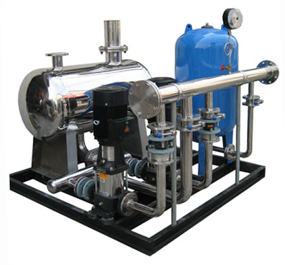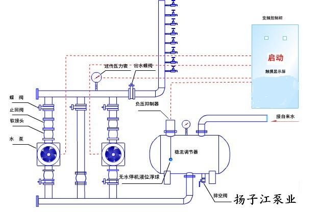 工作原理:無負壓變頻恒壓供水設備是一種新型的清潔衛生、高效節能的供水設備,也被業界稱為管網疊壓供水設備。該設備為全封閉式結構,不需要建造任何形式的水池,避免了供水二次污染。直接將食品衛生等級的不銹鋼穩流調節罐作為進水儲水緩沖裝置直接與自來水管道相連,充分利用自來水管網原有壓力能源,在同樣供水需求的情況下,無負壓變頻供水可選擇功率較小的水泵及控制設備。同時在夜間小流量用水情況下利用市政供水水壓直接供水而無需啟動水泵。相比傳統帶水池的供水設備,該設備節約了大量的電能和設備投資,其節能效果可高達50%以上。運行過程中,穩流調節罐配備的真空消除器可自動消除設備運行過程中對管網所產生的負壓,保證了正常供水的同時設備不會對市政管網其他用戶造成影響。無負壓變頻供水是目前高效節能的供水設備,特別適合城鎮自來供應較為穩定和充足的場合使用。