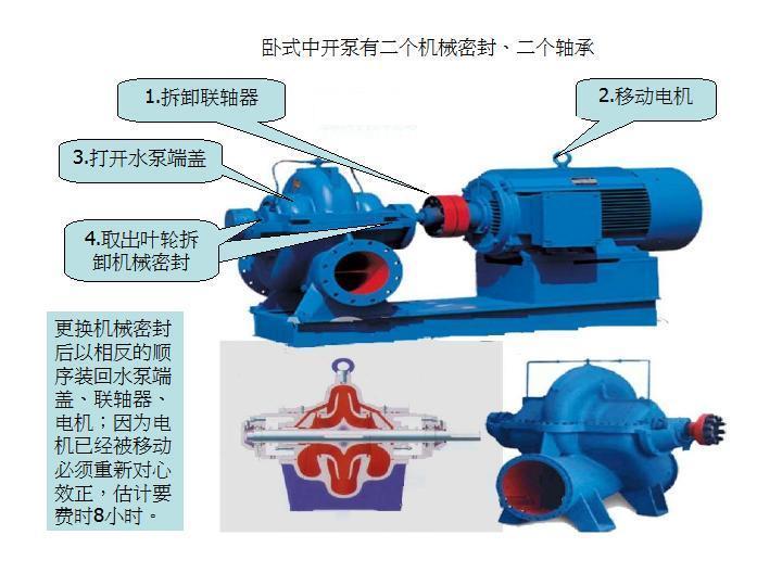 1、結(jié)構(gòu)緊湊、外形美觀、運行平穩(wěn)、噪聲低; 2、該系列泵的吸入口與排出口均在水泵軸心線的下方,檢修時無需拆卸進出口管路及電機,只要將泵蓋揭開即可將全部零件拆下進行維修; 3、SH型臥式雙吸離心泵軸封有優(yōu)質(zhì)機械密封和軟填料密封兩種方式,可供用戶在不同使用場合下選用; 4、經(jīng)過靜平衡校驗的葉輪,用圓螺母固定在磁軸上,其軸向位置可通過圓螺母進行調(diào)整; 5、SH型臥式雙吸離心泵通過彈性聯(lián)軸器由電動機直接傳動,必要時也可用內(nèi)燃機傳動; 6、從傳動方向看去,水泵為順時針方向旋轉(zhuǎn)(根據(jù)用戶需要亦可改為逆時針方向旋轉(zhuǎn));