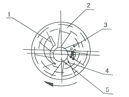 ![]() 圖(2)SK型直聯水環式真空泵的工作原理圖