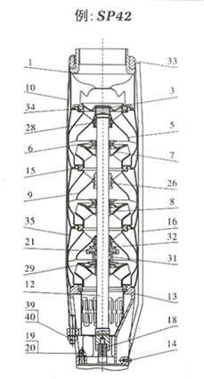 SP系列不銹鋼多級深井潛水電泵結構圖及材質