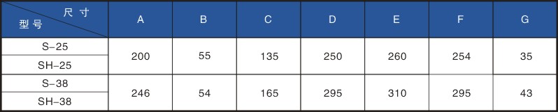目前所制造的本型泵有:S-25、S-38及SH-25、SH-38等四種。