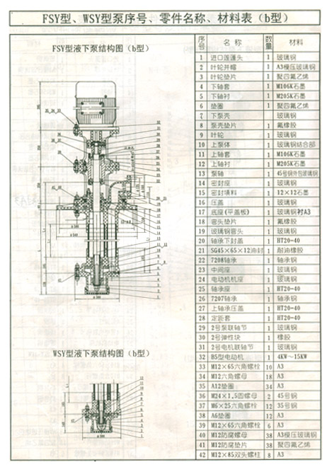 本單位生產的WSY型、FSY型玻璃鋼液下泵如下說明: