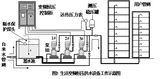 生活變頻恒壓供水設(shè)備組成及工作原理示意圖