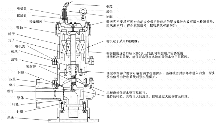 【QW(WQ)系列無堵塞潛水排污泵】結構圖: