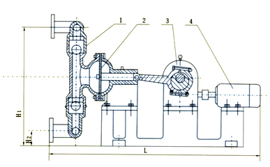 電機(4)通過減速箱(3)帶動左右兩端柱塞上面的隔膜(2)一前一后往復運動。在左右兩個泵腔內,裝有上下四個單向球閥(1)隔膜的運動,造成工作腔內的容積的改變,迫使四個單向球閥交替地開啟和關閉,從而將液體不斷地吸入和排出。